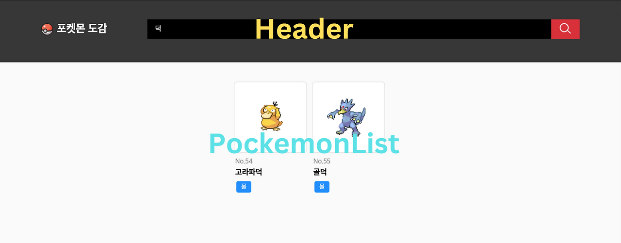 '/')로 이동 - 메인페이지의 검색창에 키워드를 입력하고 검색 버튼을 누르면 해당 키워드가 포함된 포켓몬 목록을 표시