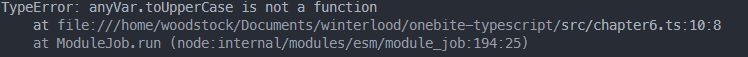 anyVar에 함수를 할당했는데 toUpperCase()라는 문자열 메서드를 호출하려고 하니 오류가 발생하는 것이다.
