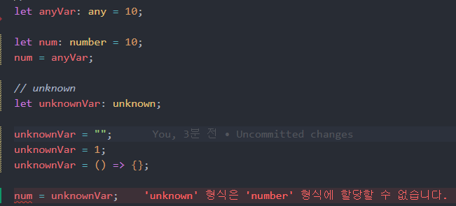 unknown 타입의 값은 다른 타입의 변수에 바로 할당할 수 없다.