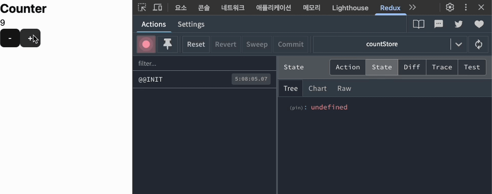 store의 값을 개발자 도구에서 확인하고 디버깅할 수 있다.