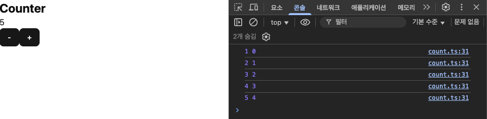 이렇게 하면 버튼 컴포넌트는 액션 함수만 구독하므로, count 값이 변경되어도 리렌더링되지 않는다.