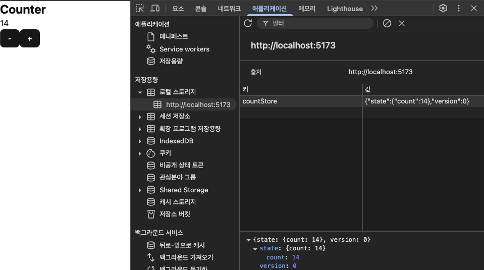 count: store.count, // 스토리지 보관 대상을 count로 명시