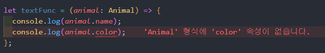 textFunc 타입의 매개변수 타입은 Animal이다.