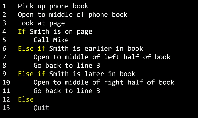 전화번호부에서 Mike Smith를 찾는다고 가정해보자.