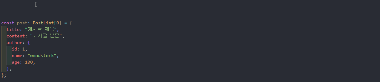 대괄호 안의 "author"를 인덱스라고 부른다. 이제 Post의 author 타입이 변경되면 자동으로 반영된다.