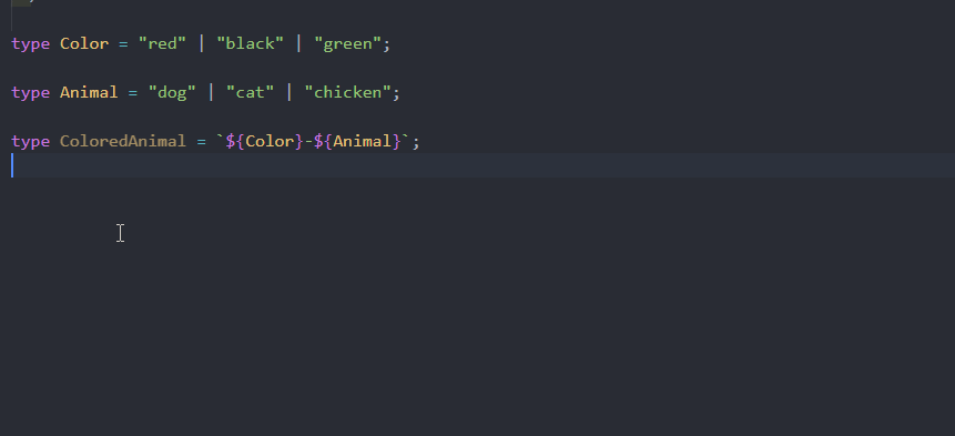type ColoredAnimal = `${Color}-${Animal}`;