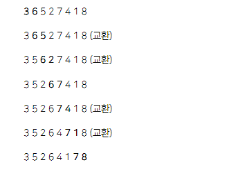 1. 가장 앞의 6과 3을 비교해 순서를 바꾼다.